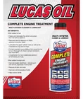$ImageURL1$ Lucas Oil 10016 Single Multi-System Complete Engine Treatment 16 Ounce Bottle PART NUMBER: 10016 BRAND: Lucas Oil DESCRIPTION Complete Engine Treatment Lucas Complete Engine Treatment is a unique formulation that cleans and lubricates multiple systems in your vehicle. When added to fuel, it cleans and lubricates all components from the fuel tank to the cylinders. It removes deposits, protects against corrosion and helps the fuel to burn more completely, which helps to lower emissions, improves fuel mileage and increases power. When added to your oil, Lucas Complete Engine Treatment cleans your engine and forms a protective barrier against heat and friction, improves oil flow in cold weather and extends oil life. FOR ALL ENGINES AND OIL TYPES. Key Benefits: - When added to fuel: Cleans and lubricates the entire fuel system from the tank to injectors Removes harmful deposits on intake valves and cylinder heads Lubricates the upper cylinder walls as well as the compression rings and oil rings Contains special Lucas additives that cause the fuel to burn thoroughly for fewer exhaust emissions and more MPG COUNTERACTS THE CORROSIVE EFFECT OF ETHANOL IN FUEL Key Benefits: - When added to engine oil: Improves engine cleanliness reduces gum and varnish, especially in oil burners Reduces friction and wear Improves cold temperature fluidity Helps extend oil life Specifications: Quantity: Single Size: 16 Ounce Directions for Use: Add to Gas or Diesel Fuel - Add approximately 1 ounce per gallon. One bottle treats a tank, up to 21 gallons. Add directly to fuel tank. Add to 2-Stroke Fuel - Add 1 ounce per gallon of pre-mixed fuel. Add to Engine Oil - Add 1 ounce only per quart of engine oil. May be added with oil change or between oil changes.