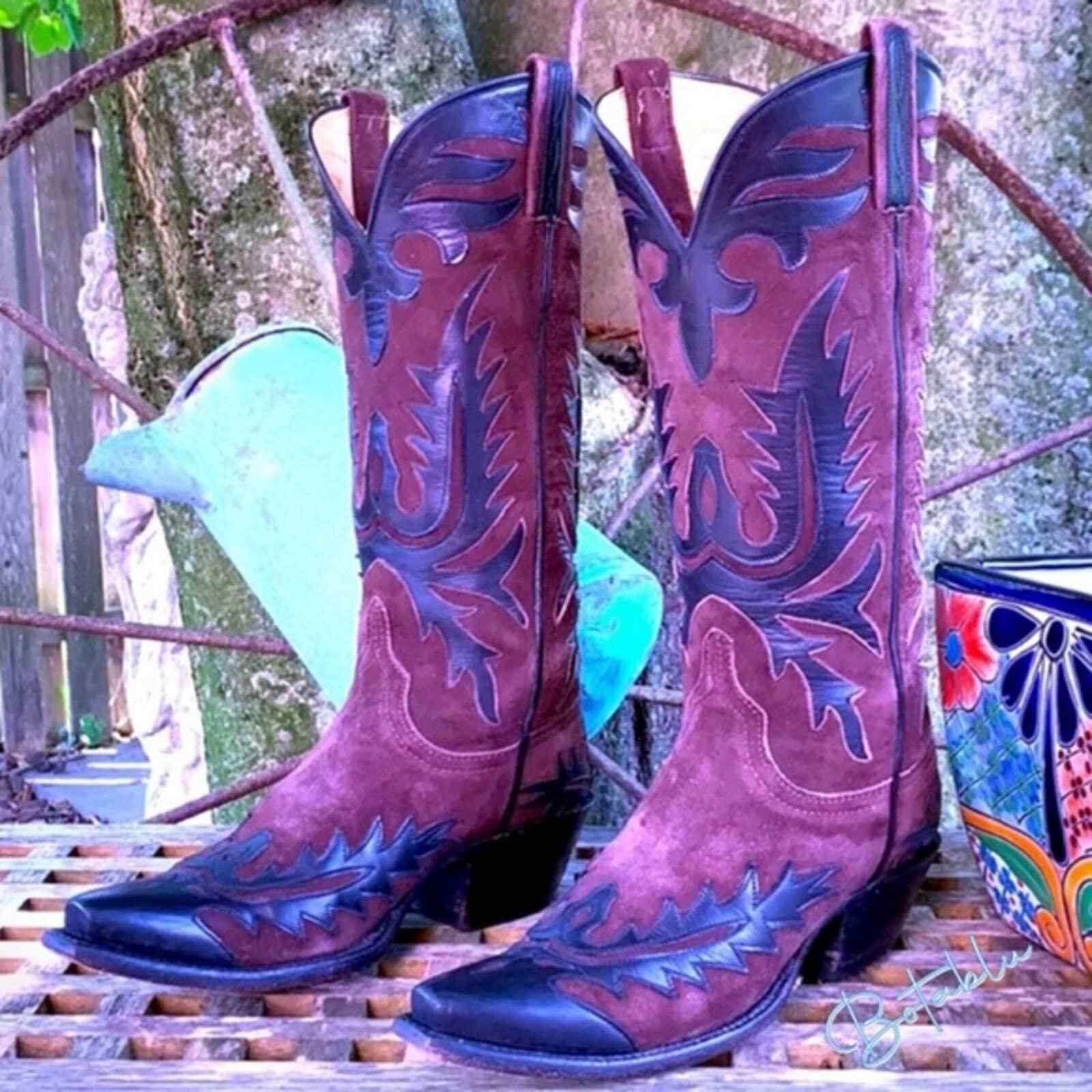 Gorgeous, Rare, Top-of-the-line, Vintage LUCCHESE Classics Handmade Brown Black Leather Cowboy Cowgirl Western Boots READ: Size 6.5 B — both by measurements and fit testing, should best fit Size 7, and listing as such. We offer this professional opinion as a courtesy only. MSRP $1200 Handmade in Texas, USA Tall Mid-Calf Height Brown Brushed Genuine Suede Leather Black Leather Overlay Toe: 5 (Snip Toe) Heel: 4 Approx measurements Shaft 12.5” Heel 2” We consider these in very good preowned condition. Please view and enlarge all photos to determine condition as you would most accurately assess it. At Botablu, our passion & purpose is curating top quality, unique/rare, vintage & new boots. We are one of the original professional, trusted vintage boot sellers with over 1700 Perfect 5-Star Ratings, thanks to our AWESOME customers. We’re most well known for our vintage Frye & Old Gringo. We love & live our products & this lifestyle. You’ll get exactly what you see, ship with care, same or next day. We appreciate you consider us for your next purchase—Your support of our small business means the world. Please ask any questions you may have prior to purchasing as all sales are final. If you like vintage 80s 1980’s retro western rockabilly texas montana usa country music concert party ranch fringe southwest aztec lane double d ranch heritage stallion tony lama corral justin dan post larry mahan stetson resistol ranch, you’ll love these. 🌟Visit Botablu for our full collection & best prices, including savings on taxes & shipping! 🌟