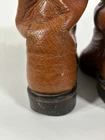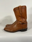 Step out in style with these high-quality Lucchese Men's Tan Brown Ostrich Exotic Roper Boots. Crafted with genuine leather and handmade with care in the United States, these boots feature a mid-calf shaft style, round toe shape, and D shoe width. The brown color of these boots makes them perfect for any occasion, whether it's for travel, casual wear, or business meetings. In addition, the boots are lined and have an insole made of soft leather for added comfort. The outsole is also made of leather, providing durability and style. These boots are perfect for those who love the Western style or are looking for a unique addition to their shoe collection. Get these boots now and elevate your fashion game! In pretty good condition with a couple scrapes on the heel and a little bit of heel drag. See pictures. SKU13
