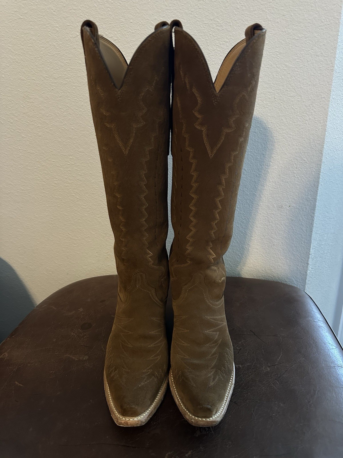 These Lucchese Priscilla boots are stunning—the soft English suede feels luxurious, and the detailed stitching adds such elegant craftsmanship. The 17-inch height fits perfectly, and the natural stacked heel gives just the right lift. The pull straps make them easy to slip on, and knowing they're handmade in Texas adds to their premium quality. Even though they didn’t match the exact description, they’re still a gorgeous pair worth every penny!