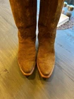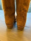Used but in fantastic condition. Worn only a handful of times. $1,095 new on website for Expresso Suede. Our No. 1 bestselling boot for women, Priscilla walks an elegant line between timeless classic and cowgirl chic. The vintage-inspired Tioga stitch pattern harks back to yesteryear, but Priscilla is a boot built for today. This knee-skimming, pull-on silhouette handcrafted from Maracca suede deserves the spotlight under dresses and over jeans. Handmade in Texas. English suede vamps English suede quarters 17-inch quarters Tioga quarter stitch pattern Detailed vamp stitch pattern CJ pull straps with overlay Natural stacked-leather heel Single-stitched welt Leather outsole Handmade in Texas