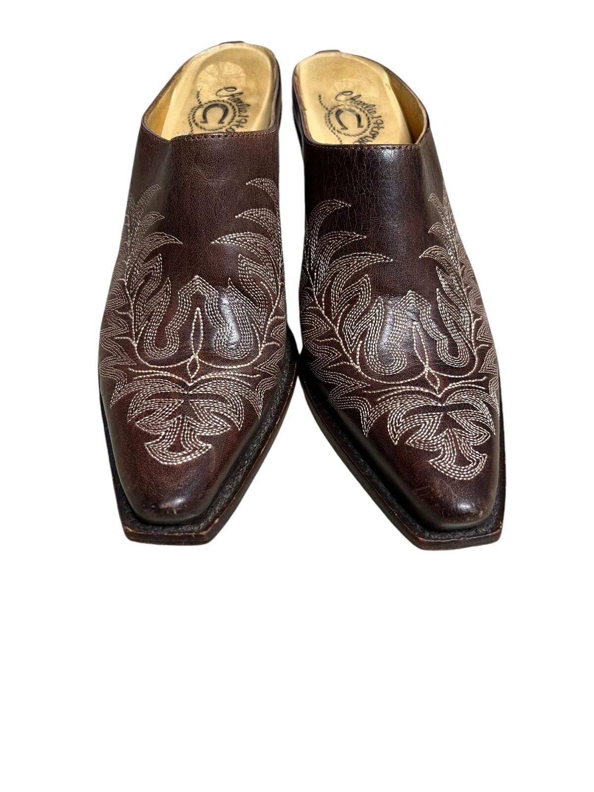 Charlie 1 Horse by Lucchese Women’s 6B Western Embroidered Brown Leather Mules. Shoes is in used condition and has signs of wear but shoes are still in great condition. Upper leather is in excellent condition and very clean , inside is clean and the soles are in great condition. Nice comfortable shoes for casual wear. Condition is pre-owned. Shipped with usps priority mail. * Please look at all pictures carefully as they are part of the description. *Seller Disclaimer: Please note that pre-owned shoes may exhibit signs of wear, scuffs, or minor imperfections. Refer to detailed images and descriptions to assess their condition accurately.Pictures are of exact item being purchased. #western #cowgirl #southwest #coastalcowgirl #rodeo