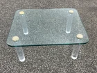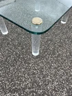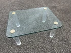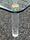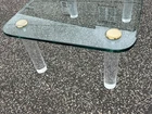 DESCRIPTION.....Up for auction is a beautiful Lucite And Glass Coffee Table by Leon Rosen For Pace Collection. It features a 3/4" polished edge glass top, Lucite legs, MCM design and would accent any decor with tasteful elegance. CONDITION & MEASUREMENTS..... The table comes from a pet/smoke free estate and is in great original vintage condition/finish and measures......H. 16" D. 28" W. 36". Most of our merchandise is pre-owned or antique and will show minor signs of wear and use. NON UPS & U.S.P.S. DELIVERY TIMES RANGE FROM 6-8 WEEKS. SOMETIMES AS SOON AS A FEW DAYS AND AS LONG AS 12 WEEKS.