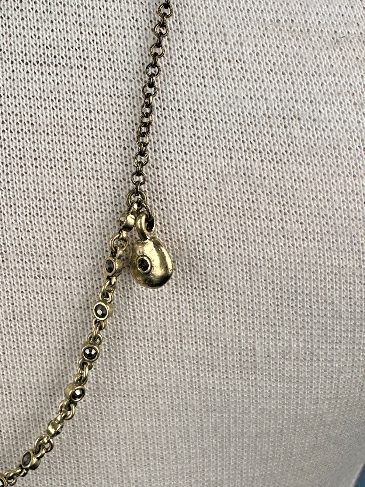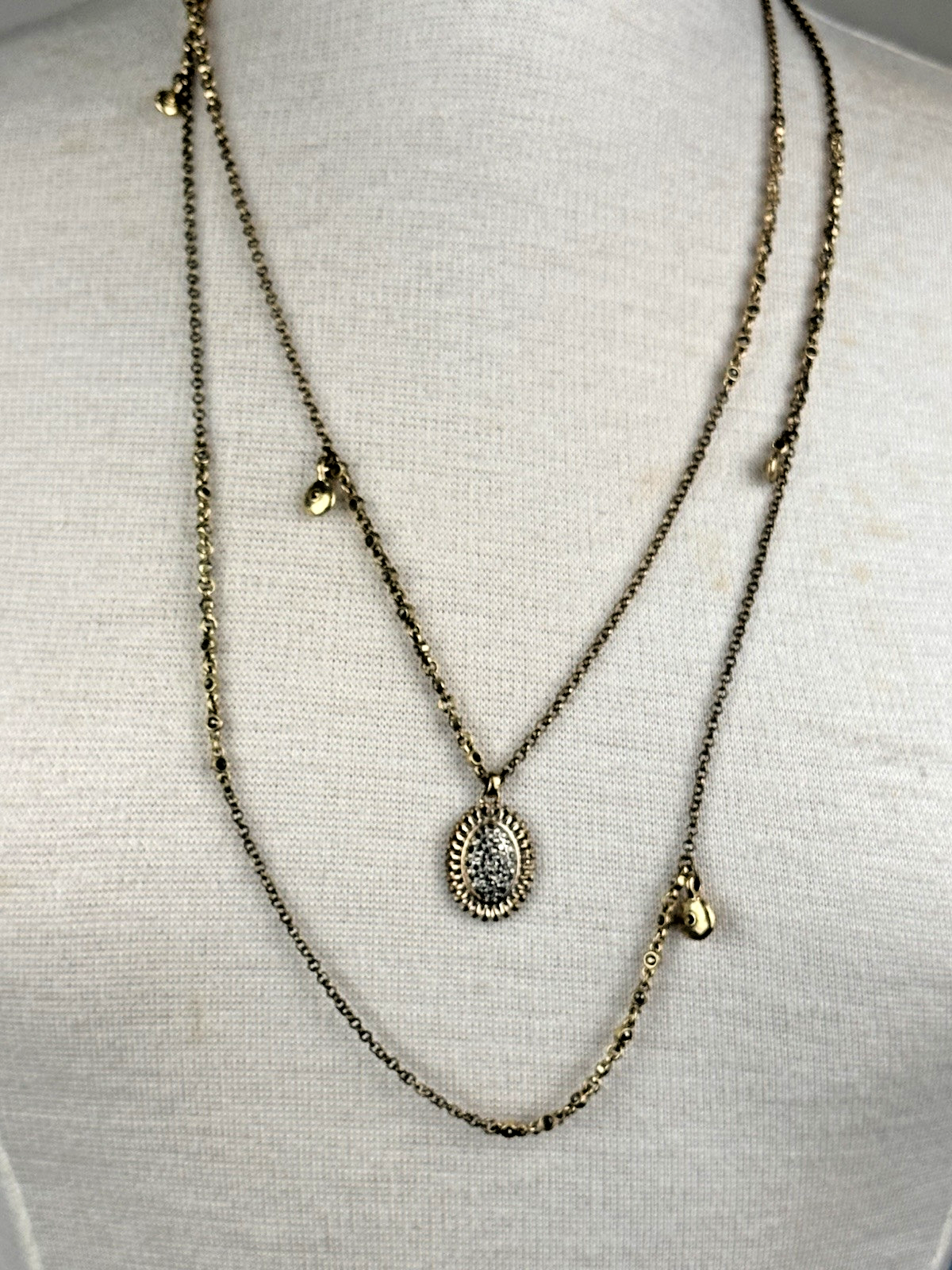Lucky Brand 2 Strand Pave C harm Necklace Station Chain Clover Charm Good Preowned Condition