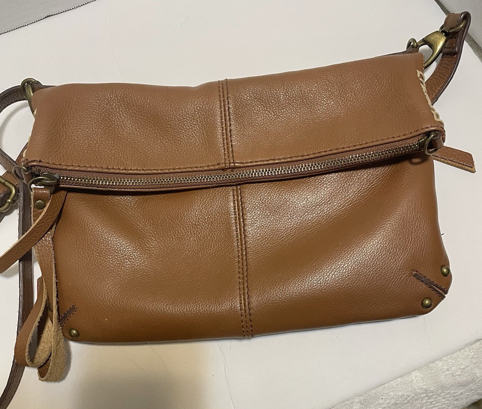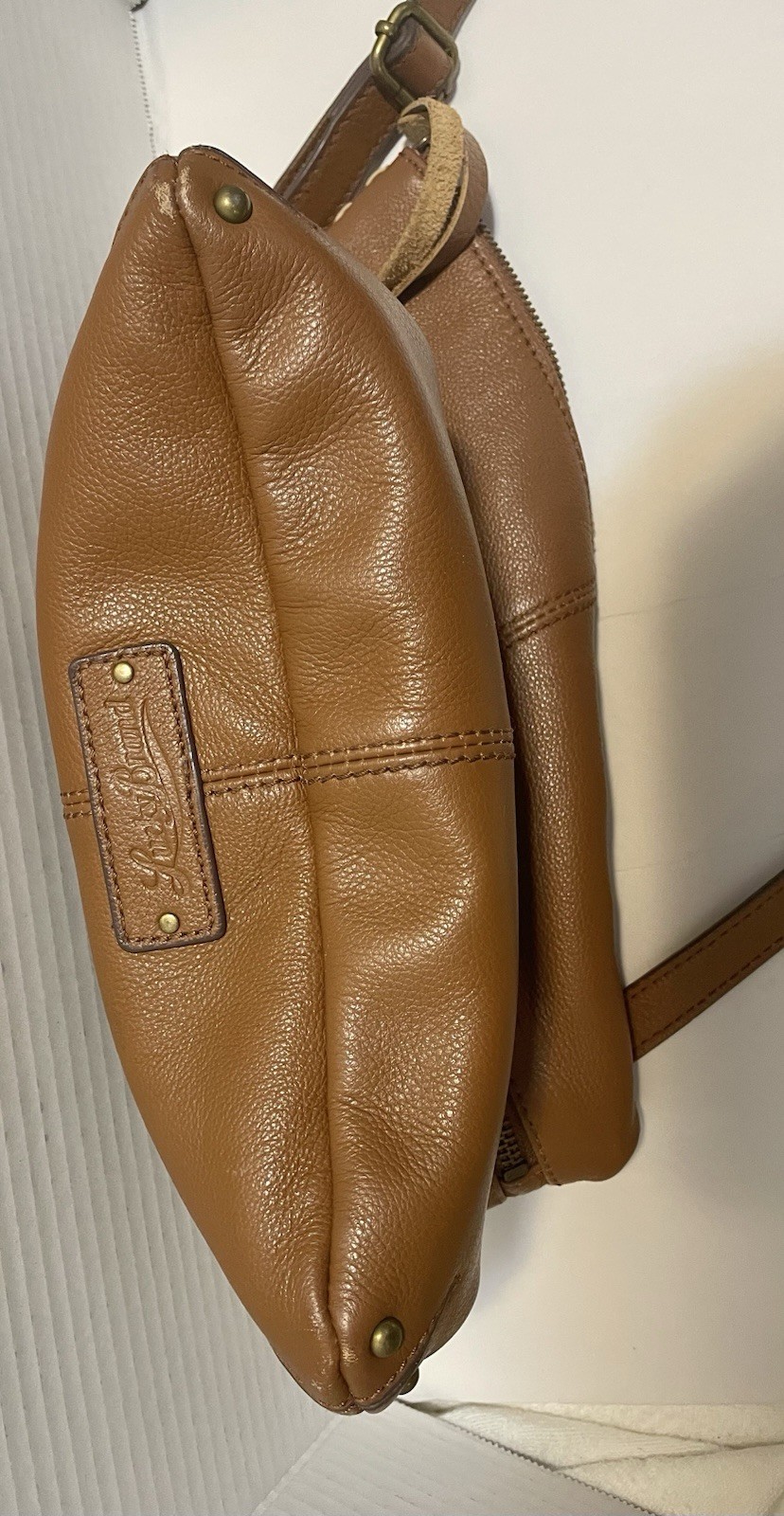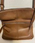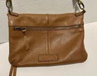 Crafted with a bohemian spirit and a classic touch, the Lucky Brand Crossbody Bag is a versatile accessory for any wardrobe. The caramel tan leather exterior offers a sophisticated pebbled finish, complemented by gold hardware accents that add a hint of elegance. Its rectangular shape and 11-inch width provide ample space for your essentials, while the adjustable strap ensures a comfortable fit for all-day wear. The bag features a secure zip closure, a well-organized interior with inner pockets, and a detachable strap for multifunctional styling options. The blue lining fabric adds a pop of color to the medium-sized purse, making it an ideal choice for business, casual outings, or travel. With its timeless design and attention to detail, this Lucky Brand bag is a fashionable staple for any occasion.