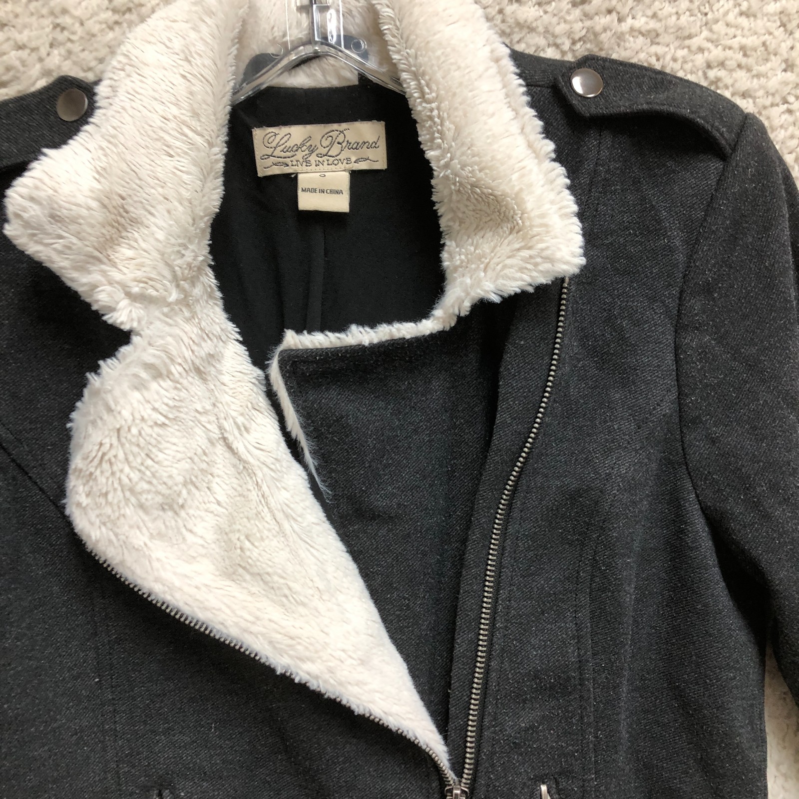 Lucky Brand Jacket Small Adult Black Asymmetric Full Zip Pocket Faux Fur Womens WE SHIP ITEMS DAILY, SO EXPECT TO RECEIVE YOUR ITEMS FAST. YES, WE COMBINE SHIPPING !!! Measurements: Chest (pit to pit) / Length (collar to end) Measured flat in inches. Please, See Pictures for Measurements. PLEASE NOTE : Please look at the measurements before purchasing. If you are not sure about the size, flat lay a similar item of your own and measure that item to compare with our measurements. We do accept returns within 60 days . Please note, the item must be returned in the exact same condition as it was received. The Seller pays return shipping if the item does not fit. We request that you select "Item does not fit" when returning an item that does not fit. Thank You! Don't forget to check out Our Other listings. Thanks and have a great day.