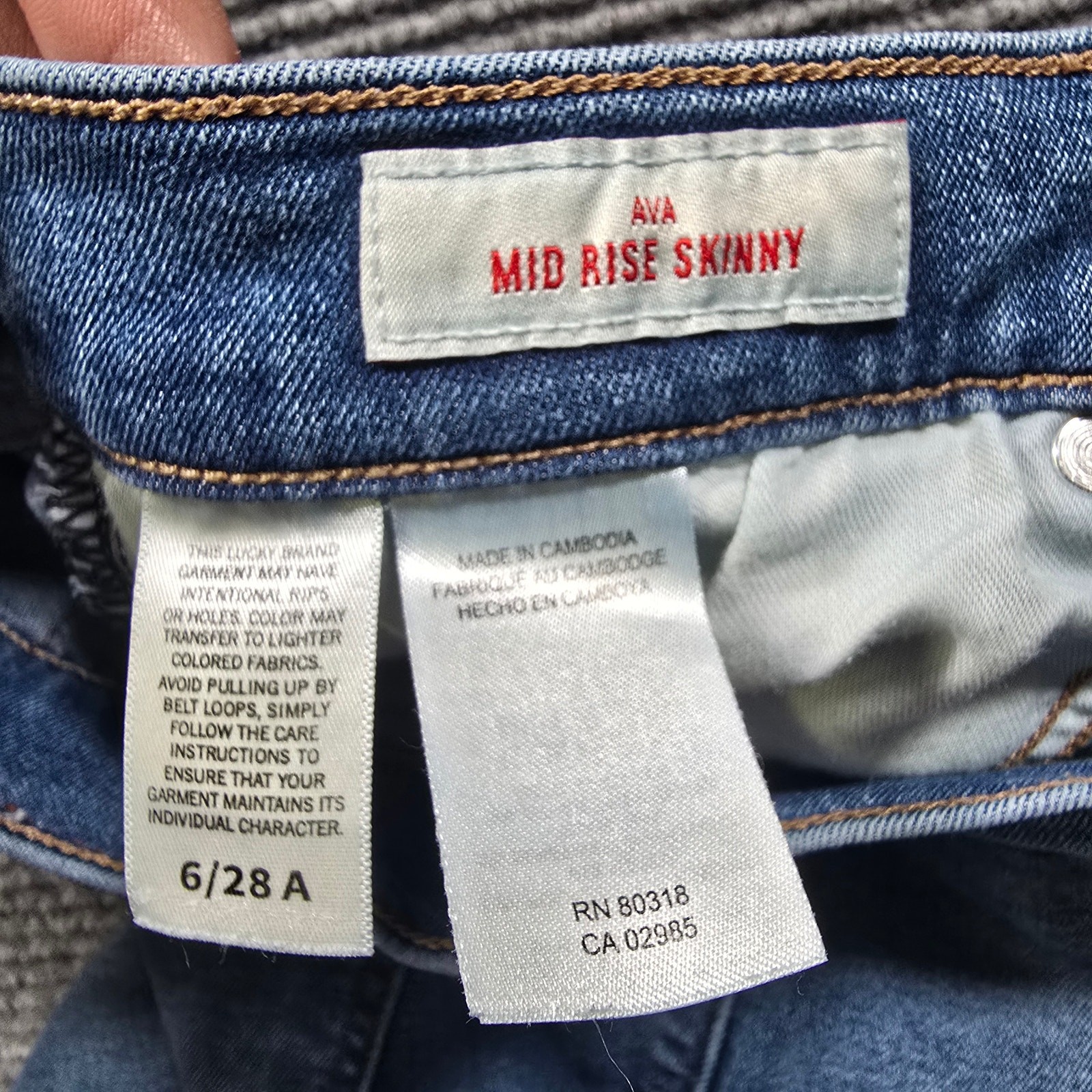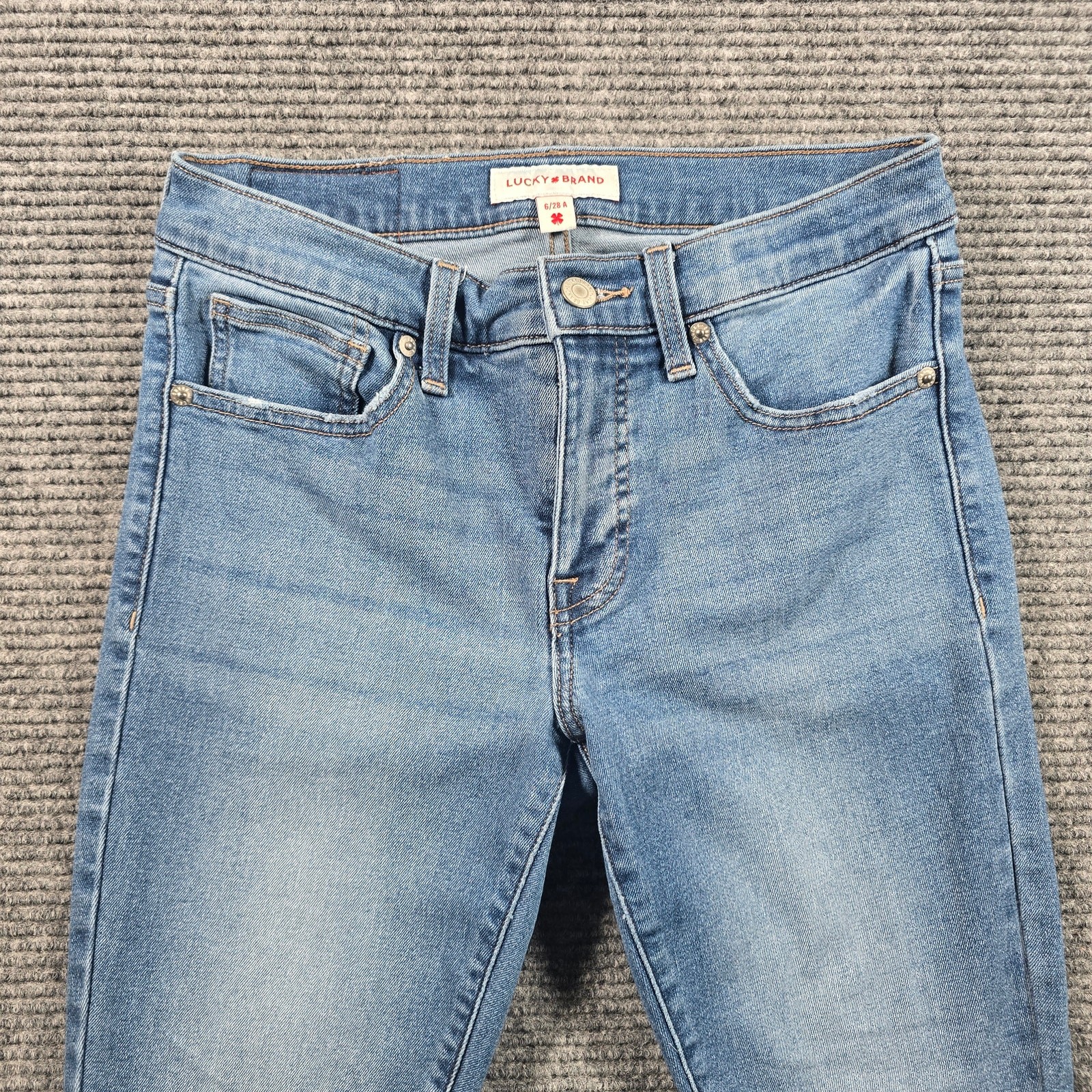 Lucky Brand Ava Mid Rise Skinny jeans in a classic medium blue wash. Flattering mid-rise fit with a slim skinny leg, easy to dress up with boots or keep casual with sneakers. Soft stretch denim makes these comfortable for everyday wear. Color may vary slightly from photos due to lighting and monitor settings. Details: Brand/Model: Lucky Brand Ava Mid Rise Skinny Style: Skinny Color/Wash: Medium Blue Wash Size: Tag size 6 / 28A Fabric: Not shown on tag Condition: Good pre-owned condition with light wash wear, no holes or major flaws noted Key Note: Stretch denim, classic 5-pocket design