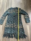 Lucky Brand Open Knit Wool Blend Cardigan Fringe Sz M Boho Whimsy Forest Fairy