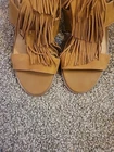 The Lucky Brand Women's Fringe Block Heel Sandal in Tan Leather is a stylish and trendy option for women looking to add a touch of sophistication to their outfit. With a strappy design, block heel, and fringe accents, these sandals are perfect for those who want to make a statement. The suede upper material adds a touch of luxury to the overall look, while the comfortable block heel provides stability and support for all-day wear. Perfect for pairing with a variety of outfits, these sandals are a versatile addition to any wardrobe.