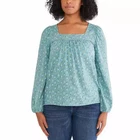 Lucky Brand Women's Square Neck Top Size: Small Color: Green Multi Content: 60% Cotton / 40% Model