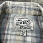 The Lucky Brand XL Flannel Western Pearl Snap Plaid Shirt in Blue Gray is a stylish and versatile addition to any man's wardrobe. This long-sleeve shirt features a collared neckline with snap closures, making it perfect for casual occasions. Made from comfortable cotton flannel, this vintage-inspired shirt with a Western theme and button accents adds a touch of flair to any outfit. With its regular fit and XL size, this shirt is a must-have for the winter, fall, and spring seasons.