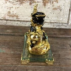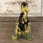 Stunning Lucky Golden Year Dragon Chinese New Year Zodiac Figurine Black Gold Black and gold dragon sitting atop gold coins and holding a gold ball. Very nice with no flaws. This has a glass base and has substantial weight to it. Beautiful and majestic!! Measures about. 5” tall x 5” wide x 3.5” deep