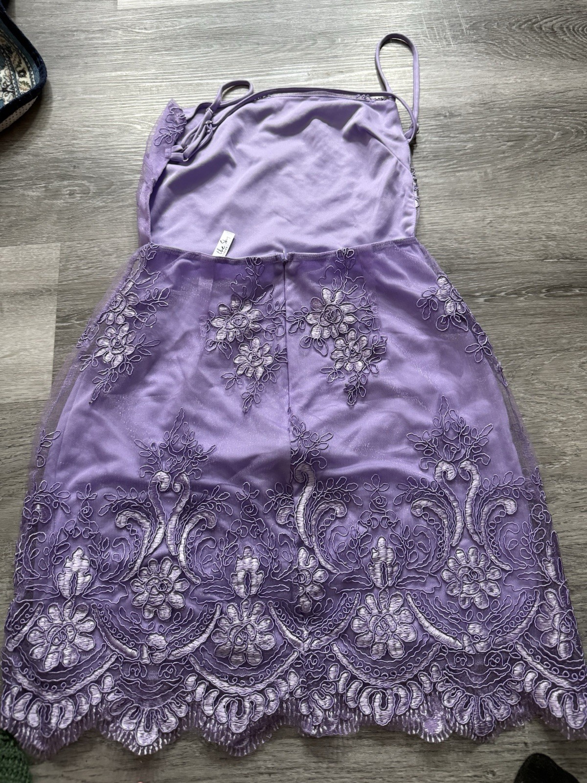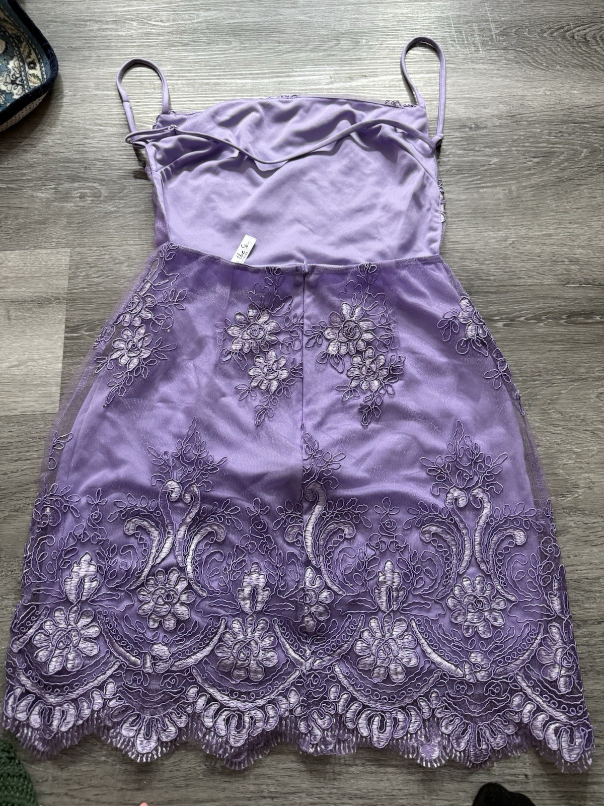 Dive into a world of elegance with the Lucy in the Sky Gray Lace Overlay Floral Backless Mini Dress, a stunning ensemble that's perfect for any sophisticated gathering. Crafted in a lightweight polyester fabric, this dress boasts a delicate floral pattern, a flattering square neckline, and a sheer, lace overlay that adds a touch of romance to your look. The dress's short length and layered accents create a playful yet chic silhouette, suitable for a variety of occasions from a casual day out to a formal event or cocktail party. The versatile purple hue complements the embroidered details and zipper closure, ensuring you look effortlessly chic whether you're attending a wedding or enjoying the fall season's festivities.