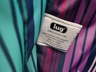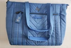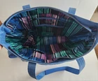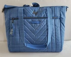 This Lug Paddle Carry All Tote Bag is perfect for any occasion. With a solid pattern and nautical, beachy theme, this bag will complement any outfit. The ice blue exterior with colorful navy stripes is accented by gunmetal hardware and features a zip and magnetic closure. The spacious interior is lined with multiple inner pockets and an insulated bottle pocket. The tote also includes an adjustable strap, detachable strap, bag charm, handle keeper, and bottom studs. This is a perfect overnight, carry all bag! This would even be a super cute diaper bag! This is new without tags.