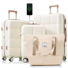 Luggage Sets 4 Piece, 20-inch with USB Port, Expandable ABS Durable Suitcase with Travel Bag, Cup Holder, ABS Hard Shell Luggage with Spinner Wheels Product Features 【High Quality Luggage Sets】Made from extra strong ABS material, which is lightweight and extremely durable. Features textured finish to prevent against scratches,keeping lightweight luggage set beautiful trip after trip. 【3 Piece Luggage set】The 20" carry on suitcase features USB charging ports (Power bank not included), 24", 28 "are expandable, adding 25% space capacity for hardshell luggage. 【Easy Maneuvering】 4 360-degree rotating wheels make this suitcase as mobile as they get. Regardless of direction, these wheels allow your suitcase to stay upright while getting pushed, pulled and dragged in any direction. 【Side hooks】 Side hooks to reduce the burden on hands. 【Handy Packing】 Includes a spacious, highly functional interior with mesh pockets and elastic tie-down straps. Pack neatly and securely. 【Free Your Hands】 The newly designed cup holder is perfectly integrated into the structure of the spinner luggage, providing you with a convenient option to put your cup on the go without worrying about it tipping or slipping. 【Expandable weekender travel bag】 Made of polyester fabric, the bags are mild water-repellent with multiple pockets for organization.