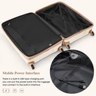 Luggage Sets 4 Piece, 20-inch with USB Port, Expandable ABS Durable Suitcase with Travel Bag, Cup Holder, ABS Hard Shell Luggage with Spinner Wheels, beige and golden Specifications Place of Origin #originPlace# Main Color Beige+Gold Main Material ABS Dangerous Goods #dangerFlag# Dimensions & Weights Assembled Length (in.) 19.20 Assembled Width (in.) 11.60 Assembled Height (in.) 28.40 Weight (lbs) 24.25 Product Features 【High Quality Luggage Sets】Made from extra strong ABS material, which is lightweight and extremely durable. Features textured finish to prevent against scratches,keeping lightweight luggage set beautiful trip after trip.