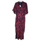 Lularoe Blue And Orange Floral Button Down Front Short Sleeve Long Maxi Belted Shirt Dress With Pockets Size 3X