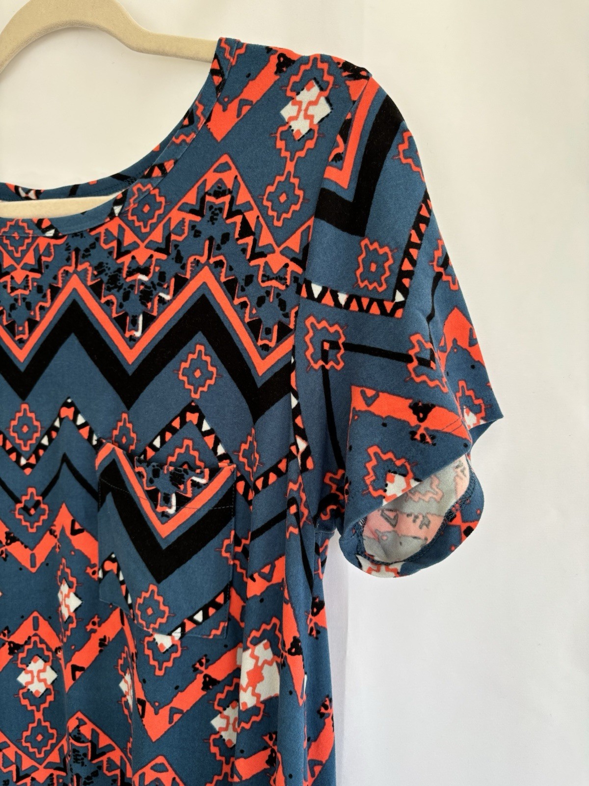 Lularoe Carly Multicolor Geometric Pattern Short Sleeve Dress Size Small Preowned excellent condition SHIPS OUT WITHIN 24hrs!! Comes from a smoke free home.