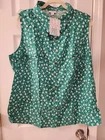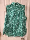 This is a LuLaRoe green floral print vest in size 2XL for women. It features a snap button front closure and decorative button accents. Made of polyester, this plus size vest is stylish and perfect for layering over outfits.