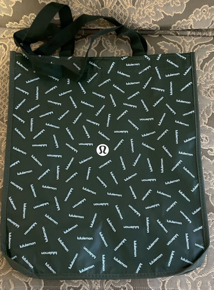 This is a limited edition Lululemon reusable shopping bag in green, measuring 16 inches in height and 14 inches in width. It features a foldable design with a snap closure. The bag is part of the 2025 collection and is ideal for carrying groceries or other items in style. Good condition No tears