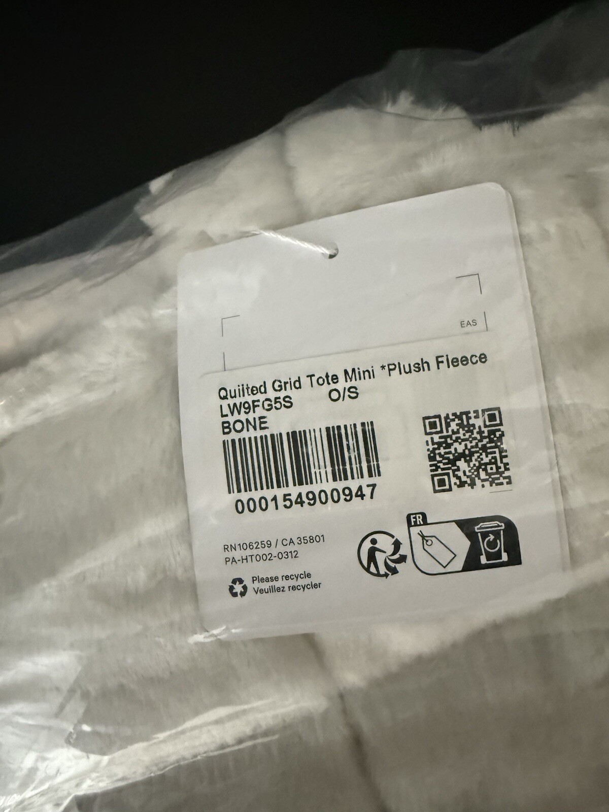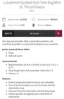 Lululemon Quilted Grid Tote Bag Mini 5L *Plush Fleece Brand new and sealed in the original plastic from Lululemon. Rare find, completely sold out and no longer sold all. Color: Bone Size: 5L (Mini) Material: Fleece Original Price: $128