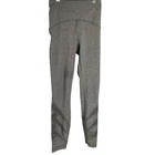 Lululemon Women's Gray Motionful 7/8 Leggings with Mesh Cut Outs Size 2 Features: 7/8 Ankle Length Mesh Cut Outs on Bottom of Legs. Inside Zippered Back Pocket Approx. Measurements flat: 11" waist 9" rise 24" inseam Good pre-owned condition: small stain on leg. See photos for condition details.