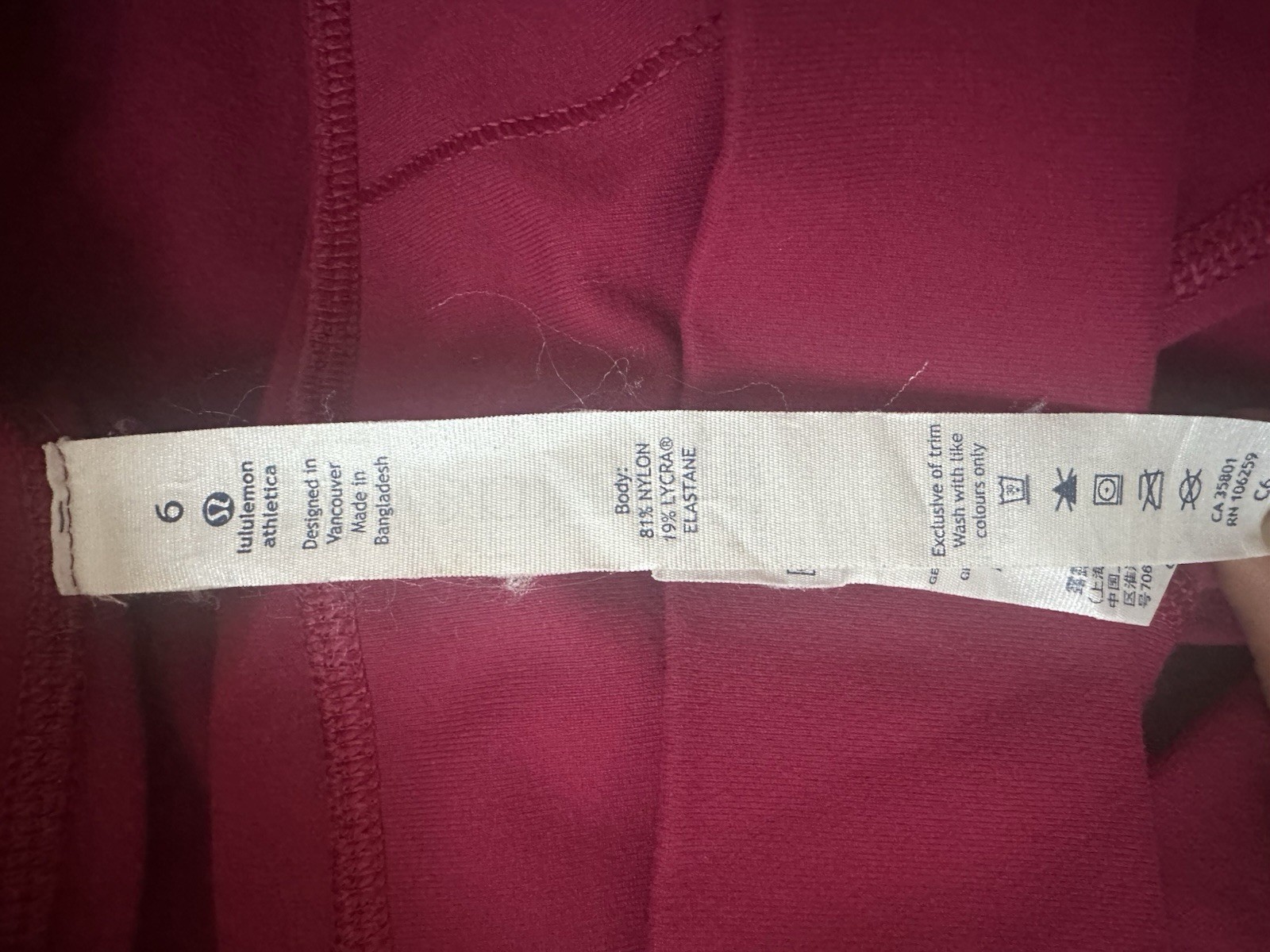 These Lululemon Women's Leggings in size 6 are the perfect addition to any activewear collection. Made from a blend of nylon and spandex, these leggings feature a solid pink color and a pull-on closure for easy wear. With a skinny leg style and a 21.5-inch inseam, these leggings offer a comfortable fit for activities like gym training, yoga, and running. The stretch fabric and athletic fit make them ideal for the active woman on the go. Machine washable for convenience, these leggings are a stylish and functional choice for the modern athleisure lifestyle. Rise 9”