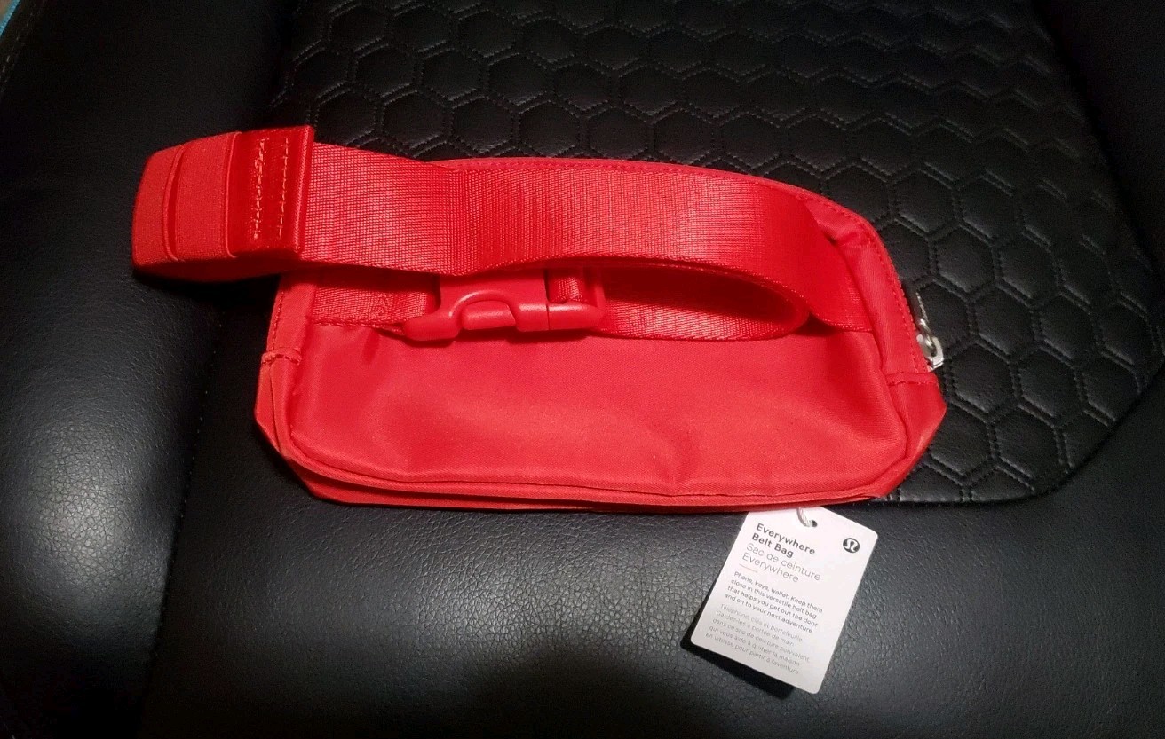 The Lululemon 1L Red Crossbody Belt Bag in solid red is a stylish and functional accessory for women on the go. Made from durable polyester and nylon materials, this bag features a convenient zipper accent and a comfortable crossbody strap. With a theme inspired by the USA, this bag is perfect for everyday use and can easily hold your essentials while you're out and about. The red exterior and lining add a pop of color to any outfit, making it a versatile choice for any woman who wants to stay organized in style.