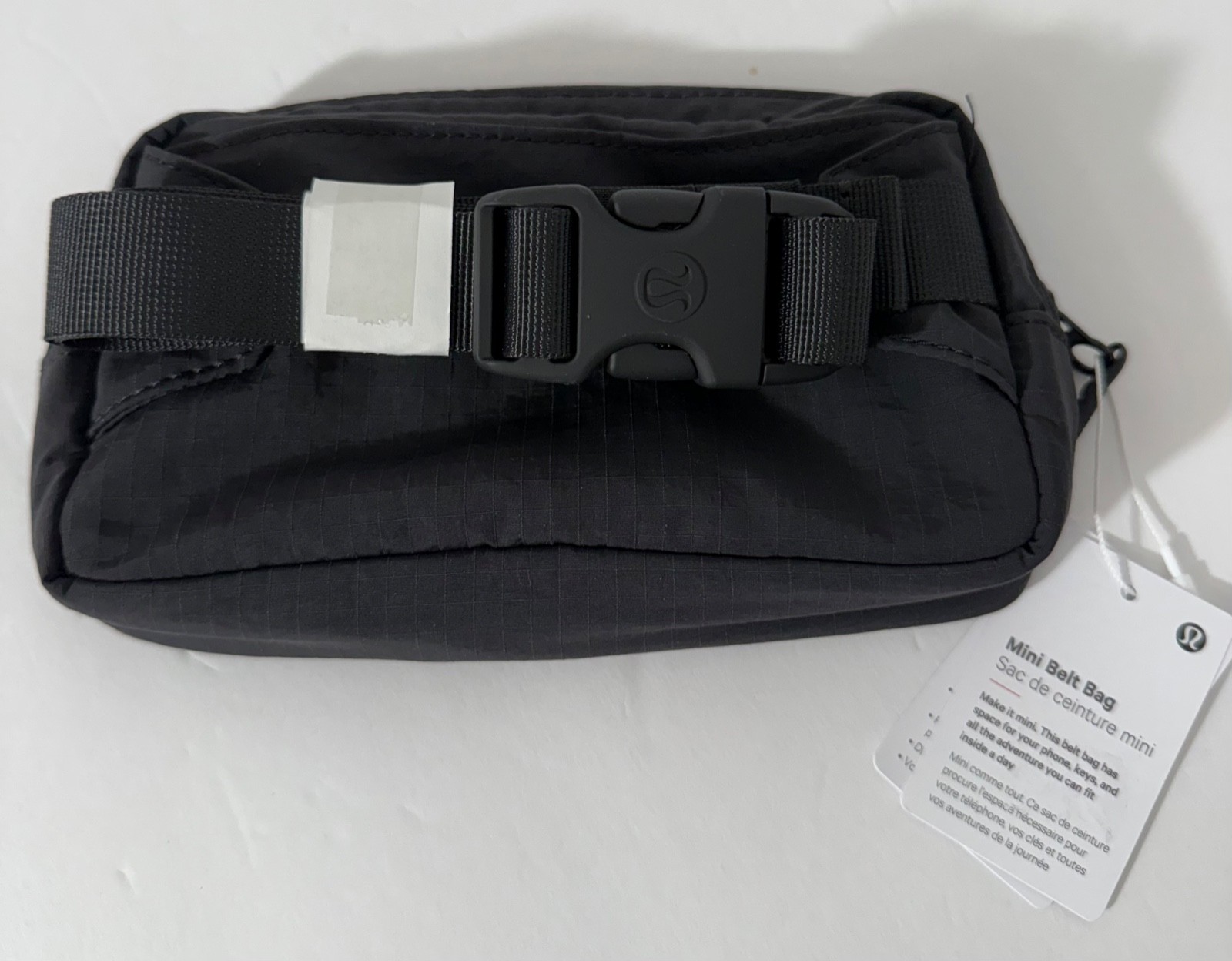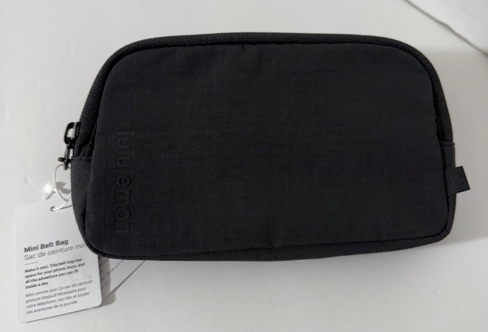 Lululemon Mini Belt Bag Color: Black LU9BJ9S Make it mini. This belt bag has space for your phone, keys, and all the adventure you can fit inside a day. Fabric strap for comfortable carrying Easy-access, exterior pocket for your essentials Interior pocket for small items Dimensions: 7.1" x 1.6" x 4.1" Volume: 0.7L