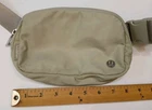 The Lululemon Belt Bag in Grey is a versatile and stylish accessory for women. This medium-sized crossbody bag features a solid grey exterior made of durable nylon material, complemented by silver hardware accents. The adjustable strap and zip closure with a buckle add functionality to this on-the-go bag, perfect for carrying essentials while keeping your hands free. The versatile style and high-quality construction make it a must-have for fashionable and practical women on the move. Preowned Measurements in photos SOME SIGNS OF WEAR NO TEARS OR RIPS NO HOLES ZIPPERS AND BUCKLE GREAT CONDITION HARDWARE HAS SCRATCHES AND FADING