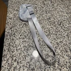 Has staining throughout Back has discoloring Strap has a few stains Small rip/loose threads on bottom (pic 5) Smoke free home