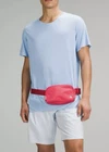 The Lululemon Everywhere Belt Bag is a stylish accessory in a vibrant pink color, perfect for travel or casual outings. It features a solid rectangular shape with a zip closure, made of durable nylon exterior material and lined with polyester. This unisex one-size-fits-all fanny pack is part of the Lululemon brand's collection, offering a convenient and fashionable way to carry your essentials on the go.