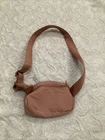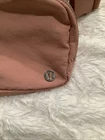 The Lululemon Everywhere Belt Bag Bundle of 2 in black and rose is a stylish and practical accessory for women. This small rectangular bag with a zip closure and adjustable strap is perfect for carrying essentials while on the go. Made of durable nylon with a polyester lining, it features silver and black hardware accents and comes in a classic solid color pattern. The versatile design of this belt bag allows it to be worn across the body for easy access and convenience.