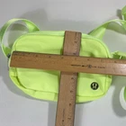 Please review all of the photos to see the exact measurements and condition. Please inspect pictures to make sure everything is to your satisfaction. Thank you for looking. The Lululemon Everywhere Belt Bag in Faded Zap Neon Color is a stylish and practical accessory for women. Made of durable polyester material, this belt bag features a solid pattern with a signature LULU logo accent. The adjustable strap allows for a comfortable fit, while the zip closure and silver hardware add a touch of detail. The compact size of 7.5” x 5” makes it perfect for casual occasions, and the vibrant neon green exterior color adds a pop of color to any outfit.