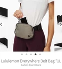 Rare carbon dust, black matte hardware, worn as fanny or crossbody, original strap continuous, contrast strap and bag color. Gorgeous color that goes with everything! Preowned excellent. Minor surface marks and hardware color wear only visible if you look right down on it. Otherwise excellent condition, no fraying. Stock photos included for reference. This color is as rare or rarer than moonwalk, angel wing and teal shadow!