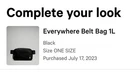 The Lululemon Everywhere Belt Bag is a large 1L fanny pack designed for travel and casual occasions. It features a solid black exterior made of polyester and nylon with zipper accents. The bag has a crossbody strap handle style for easy carrying and a zip-around closure. This versatile and stylish bag is from the Lululemon brand, perfect for women on the go who need a spacious and functional accessory for their essentials.