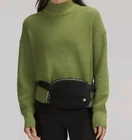 The Lululemon Everywhere Belt Bag in fleece sherpa material with black exterior and gold hardware is a versatile and stylish accessory for women. This rectangular bag features a zip closure and a crossbody strap handle in black nylon material. Perfect for travel or casual occasions, this bag showcases a solid black exterior with gold accents, adding a touch of elegance to any outfit. The adjustable strap allows for customized comfort, making it a practical and fashionable choice for everyday use.