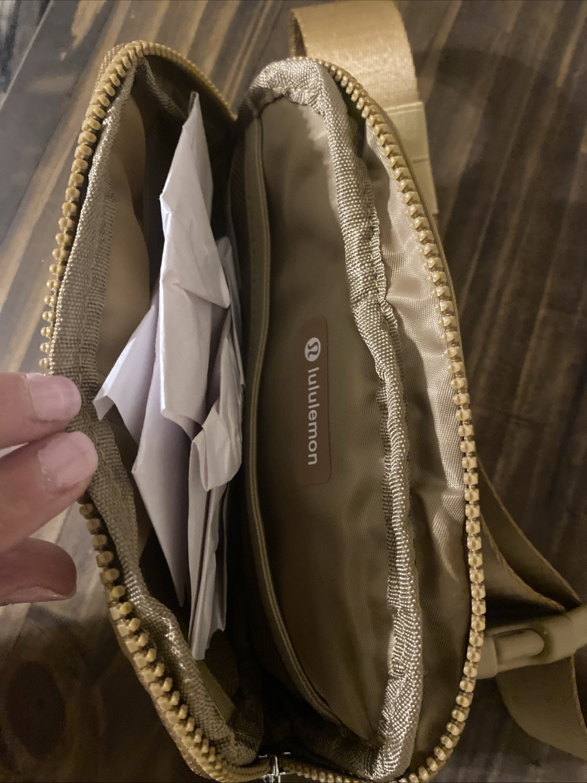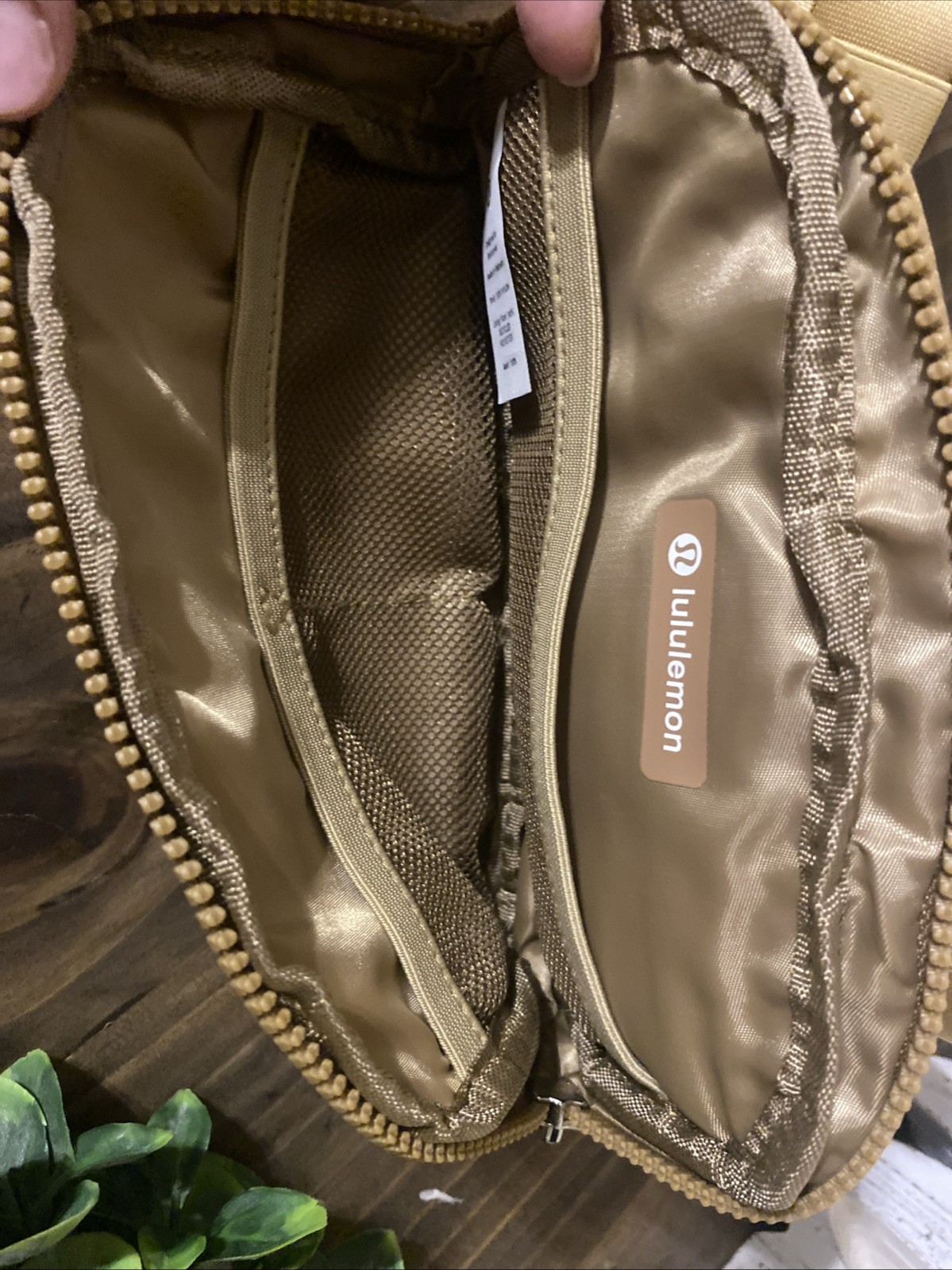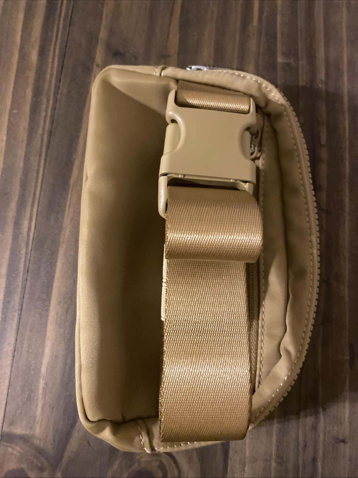 The Lululemon Women's Nylon Full Zip Buckle Strap Fanny Belt Bag in Camel Brown is a stylish and practical accessory for women. It features a solid exterior color in camel with a zip closure for easy access. The belt bag has a small size with a 4" height and a 6" strap drop, making it convenient to carry essentials while on the go. Made with durable nylon material in a neutral camel color, this fanny belt bag combines functionality with a fashionable design. Perfect for holding small items while maintaining a trendy look.