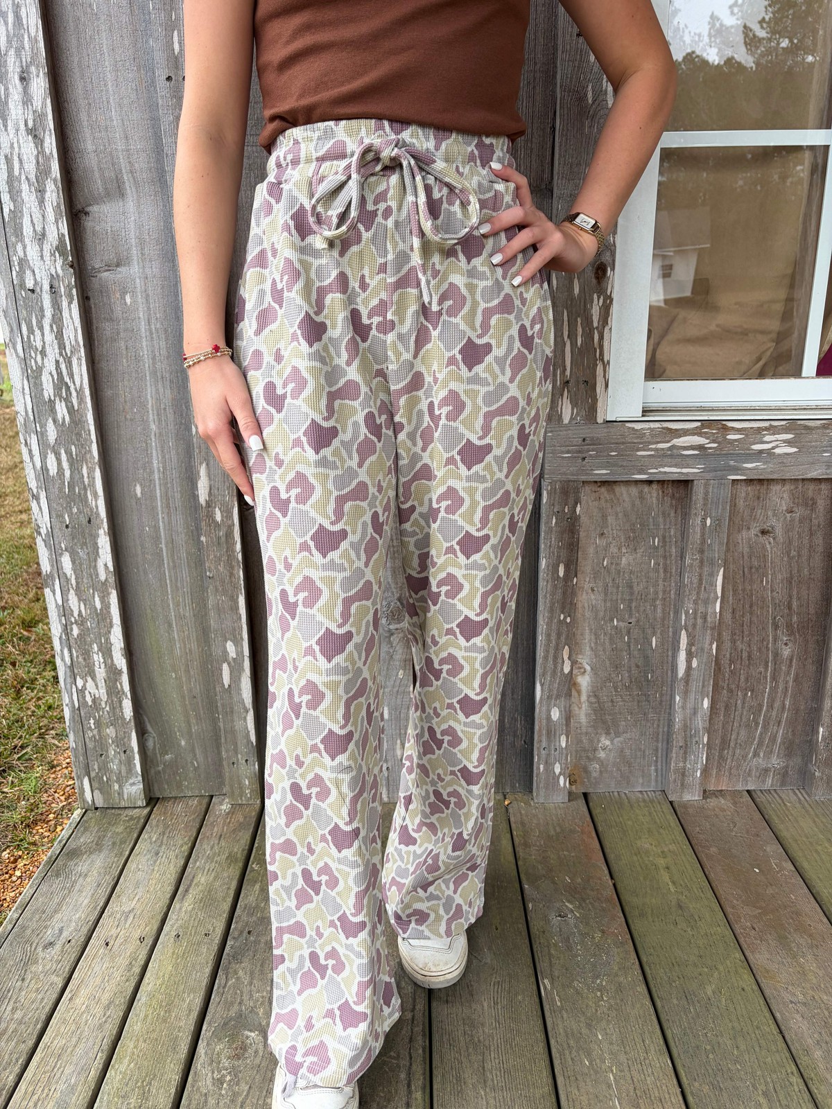 Lulu Mac Waffle Knit Camo Pants Cozy meets cute in our Waffle Pop Collection! Made from ultra-soft waffle knit fabric, these pants are designed for all-day comfort with a relaxed, wide-leg fit. The ribbed waistband with a functional drawcord gives you the perfect adjustable fit, while pockets (yes, pockets!) add the practicality you’ll love. Pair them with the matching top to complete the coziest set ever. * Cozy waffle knit fabric * Ribbed waistband with adjustable drawcord * Wide leg fit * Pockets for everyday ease Don’t forget to check out the rest of our Waffle Pop Collection to mix and match your perfect look! Lulu Mac Waffle Knit Camo Pants Cozy meets cute in our Waffle Pop Collection! Made from ultra-soft waffle knit fabric, these pants are designed for all-day comfort with a relaxed, wide-leg fit. The ribbed waistband with a functional drawcord gives you the perfect adjustable fit, while pockets (yes, pockets!) add the practicality you’ll love. Pair them with the matching top to complete the coziest set ever. * Cozy waffle knit fabric * Ribbed waistband with adjustable drawcord * Wide leg fit * Pockets for everyday ease Don’t forget to check out the rest of our Waffle Pop Collection to mix and match your perfect look! × × × × × × Shipping info Click the Shipping & Payments tab above the listing description for more info Click the Shipping & Payments tab above the listing description for more info! Additional delivery notes PICK UP OPTION Sorry, our items are NOT available for pick-up. PAYMENT Immediate payment is required upon selecting "Buy It Now" or upon checking out through the cart. We accept payment via U.S. PayPal accounts and all Major Credit Cards, Debit Cards & Google Pay. We are legally required to collect sales tax in those states and localities where we maintain a physical presence (nexus). The applicable amount of sales tax charged to an order will be calculated based on the shipment destination's state and local sales tax laws. Thank you for shopping with us on eBay! Additional Information No additional information at this time Ask seller a question You might also like Lulu Mac Red and Black Puff Sweatshirt Lulu Mac Waffle Knit Brown Long Sleeve Top Lulu Mac Black Baby Doll Short Sleeve Top Lulu Mac Dark Brown Baby Doll Short Sleeve Top Contact To contact our Customer Service Team, simply click the button here and our Customer Service team will be happy to assist. Ask seller a question © SOUTHERN SUNDROP BOUTIQUE Shipping & Payments Click the Shipping & Payments tab above the listing description for more info Payment Accepted Payment Methods Immediate payment is required upon selecting "Buy It Now" or upon checking out through the cart. We accept payment via U.S. PayPal accounts and all Major Credit Cards, Debit Cards & Google Pay. We are legally required to collect sales tax in those states and localities where we maintain a physical presence (nexus). The applicable amount of sales tax charged to an order will be calculated based on the shipment destination's state and local sales tax laws. Thank you for shopping with us on eBay! Returns Returns are accepted Items must be returned within 30 days of the auction ending Buyer will pay for return shipping. eBay integration by