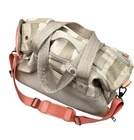 This Lululemon Bag is perfect for travel or any gym or training session. With a convenient zip closure, it's easy to store all your essentials. Has shoe storage. The bag is made of durable nylon, canvas, and leather materials, ensuring it can withstand the wear and tear of daily use. The medium-sized bag features a stylish beige and pink color combination and has a height of 11 inches, length of 18 inches, and depth of 10 inches. It's designed to cater to the needs of women and is ideal for storing gym clothes, tablets, shoes, and other accessories. Whether you're heading out for a workout or need a bag for the weekend, this Lululemon Athletic bag is the perfect choice.