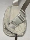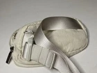 The Lululemon Belt Bag in White is a stylish and practical crossbody fanny pack designed for travel. Made of durable nylon with a matte finish, this bag features a solid white exterior and silver hardware accents. The adjustable white crossbody strap offers comfort and convenience, while zip closure adds security for your belongings. The size capacity is perfect for carrying essentials on the go, and the nylon lining ensures durability and easy maintenance. Perfect for women who value both fashion and functionality in their accessories. Has some wear and stains Please see all photos for details of condition. Sold as is. Thanks for taking a look and please feel free to check out the other items I have for sale!