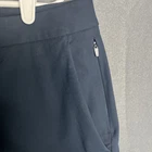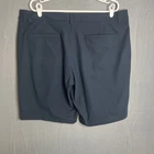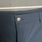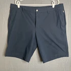 Crafted for comfort and style, these Lululemon Commission Shorts in a classic navy blue offer a versatile addition to any wardrobe. Designed with a regular fit and a comfortable mid-rise, the size 38 shorts feature an 11-inch inseam, ideal for a casual look that transitions smoothly from a day at the office to an afternoon jog. The shorts are made from Lululemon's high-quality polyester Microfiber, known for its stretch and easy-care properties. They include practical features such as slash pockets for essentials, a secure zip closure, and subtle branding accents that enhance the shorts' preppy and sports-themed appeal. Whether for travel, workwear, or everyday wear, these shorts are a reliable choice for various occasions.