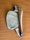 The Lululemon Everywhere Belt Bag Distressed SKU16 is a stylish and functional accessory designed for women. Made of durable nylon with a solid gray exterior, this small rectangular bag features a zip closure and a crossbody strap handle. The adjustable strap allows for a comfortable fit, while the distressed finish adds a trendy touch. Perfect for everyday use or for hands-free convenience on-the-go, this belt bag is both practical and fashionable, making it a versatile addition to any outfit.