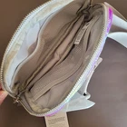 This belt bag is absolutely stunning—the iridescent finish shifts between pink, blue, and silver in different light. It’s brand new with tags still attached and hardware protectors in place. No flaws, no smells, just perfect condition. A must-have for hands-free style!