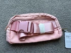 Lululemon Everywhere Belt Bag 1L Knit Nylon Pink NEW WITH TAGS Measurements Bag dimensions: 19cm x 5.5cm x 13cm (7.5" x 2" x 5") Strap length when fully extended: 106cm (41.7”) Volume: 1L Product Features Exterior zippered pocket to secure your valuables Interior pockets hold the essentials Once you find your perfect fit, tuck the excess belt bag strap into the elastic loops 039