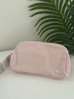 The Lululemon Everywhere Belt Bag 1L in Pink Mist is a stylish and functional accessory for women on the go. This small, lightweight bag features a solid pink exterior with silver hardware accents, making it perfect for casual outings or travel. The bag has a zip closure and buckle strap, along with inner pockets for organization. The adjustable cross-body strap adds versatility to the classic design, while the water-resistant exterior ensures your belongings stay dry. Perfect for a concert, festival, or everyday use, this belt bag is a colorful and practical addition to any wardrobe.