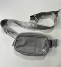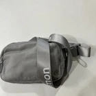 Lululemon Crossbody Waist Bag Gray Fanny Pack Belt Bag Adjustable. Pre owner item some wear, a few stain marks in the bag and the belt, please see the pictures for reference.