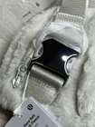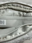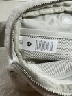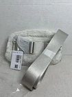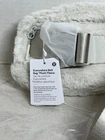 The Lululemon Everywhere Belt Bag is made of plush fleece in a bone color with silver accents. It features a zip closure, adjustable crossbody strap, and a lightweight design. This medium-sized bag is perfect for travel, parties, casual outings, workwear, or business use. It includes a pouch accessory and is part of the Lululemon brand's collection. Brand new with tags in original plastic.