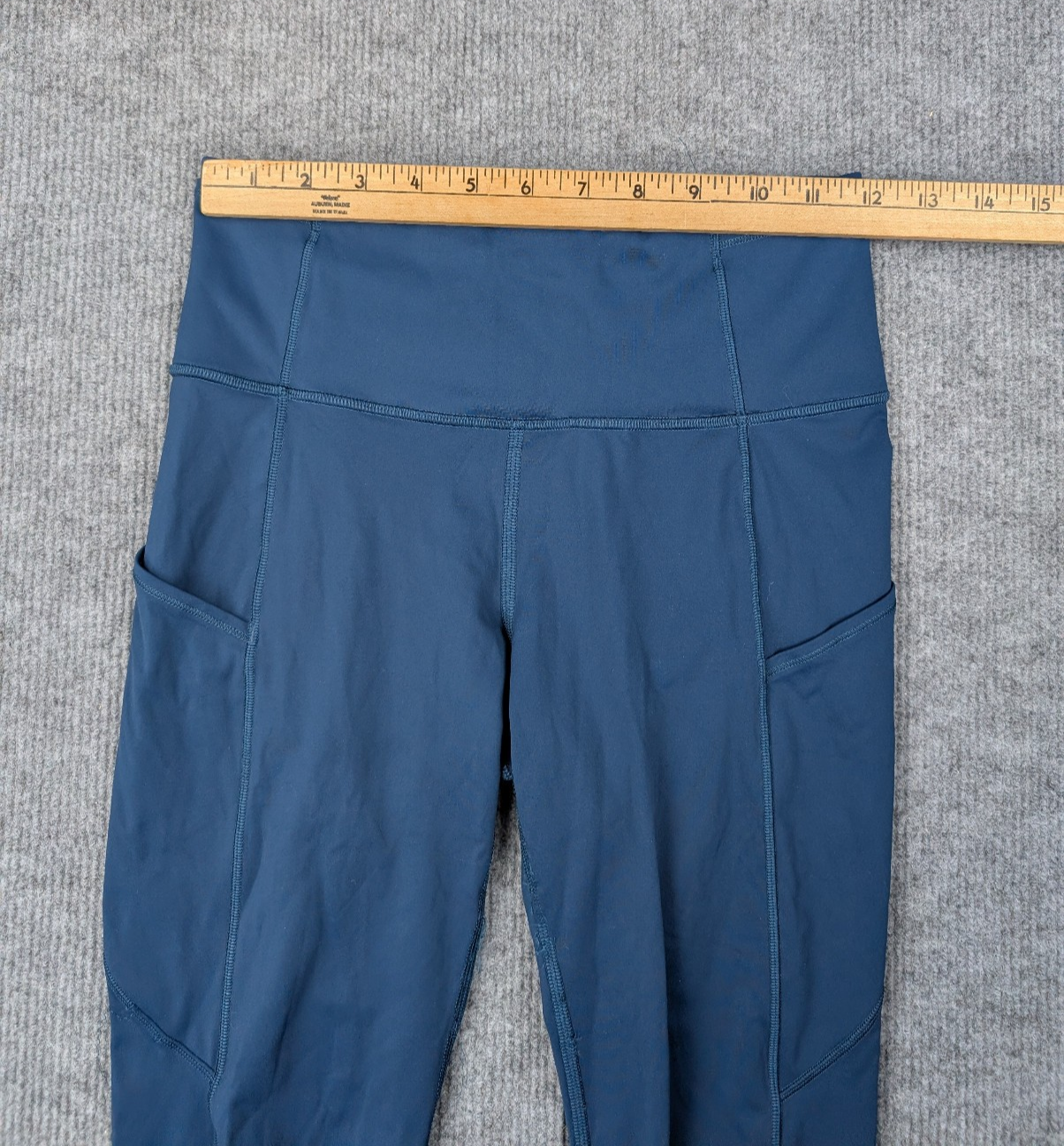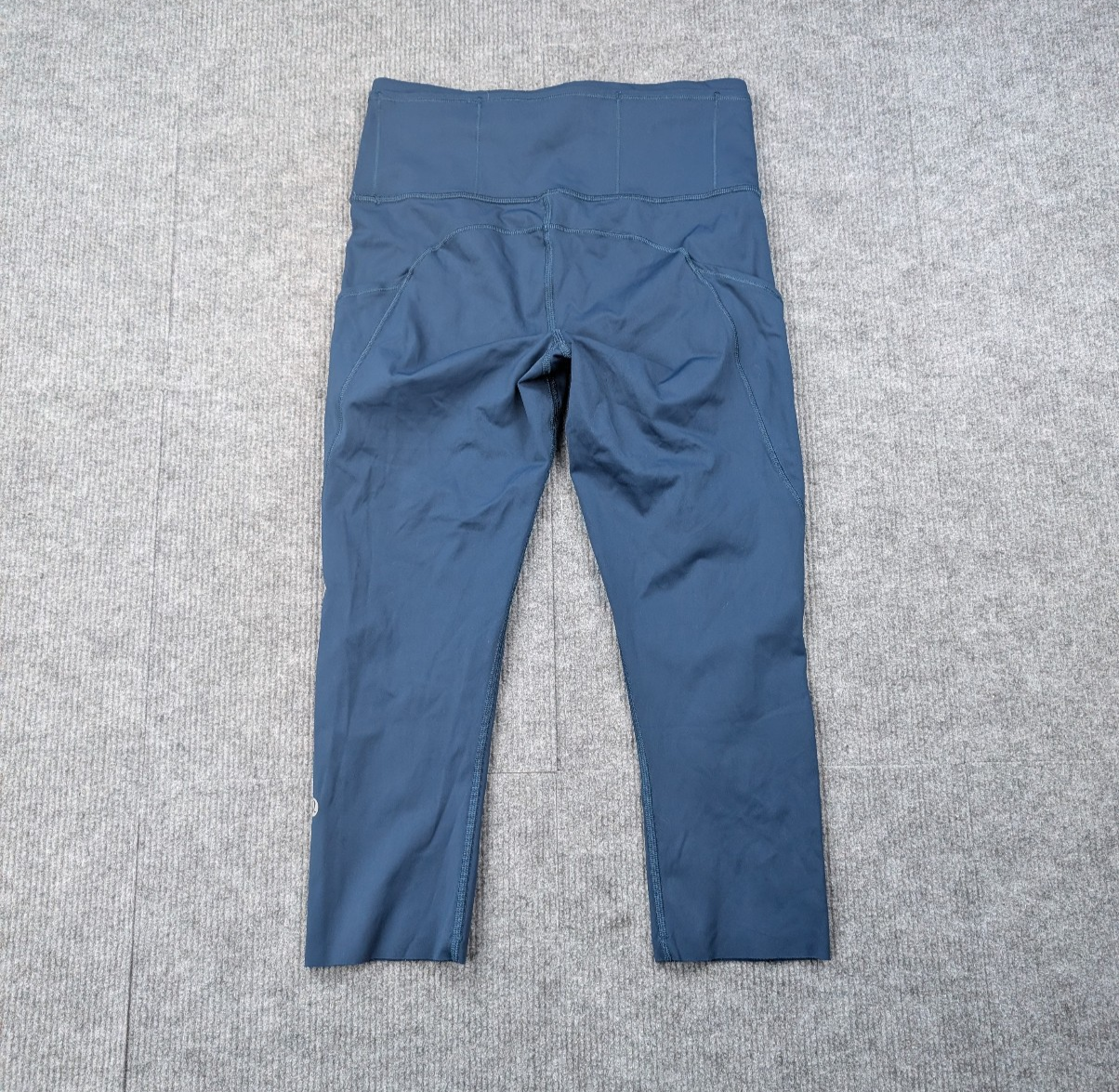 Brand: Lululemon Type: Leggings Style: Cropped Department: Women Size: 6 Color: Blue Material: Nylon, Lycra Fabric Type: Stretch Knit Fit: Athletic Pattern: Solid Rise: Mid to High Rise Features: Stretch, Breathable, Pockets, Moisture Wicking Performance/Activity: Yoga, Running, Training, Gym Season: Spring, Summer, Fall Country/Region of Manufacture: Unknown Vintage: No Condition: Pre-Owned