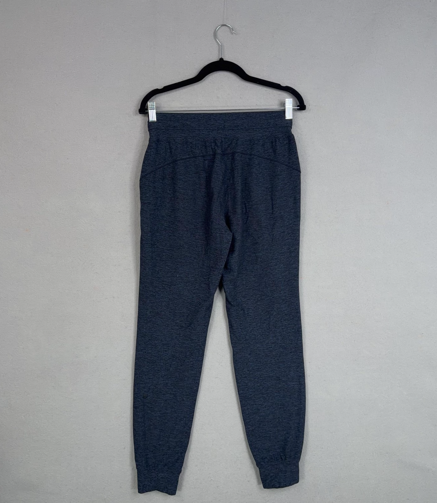 Lululemon Jogger Pants Womens 6 Blue Heather Drawstring Pockets Comfy Pre-owned with minimal signs of wear; fabric is clean and free of stains, snags, or pilling. Seams, waistband, and cuffs are intact with good stretch, and drawstring and pockets are fully functional. Interior size dot is present; original retail tags are not included. Brand: Lululemon Style: Womens jogger pants tapered cuffed legs for a relaxed yet streamlined silhouette. Color: Dark blue heathered flecked knit. Size: Womens 6 (6 on interior Lululemon size dot). Material: Soft stretchy performance knit fabric designed for comfort and movement. Details: Wide pull-on waistband with adjustable external drawstring, front slant hand pockets, back yoke seam for shaping, and ribbed jogger cuffs at the ankles. Small tonal Lululemon logo at the lower leg. Style/Model Info: Interior size dot shows code U30418 LW5BCJS. Occasion: Versatile joggers ideal for yoga, gym and training, travel, or casual everyday loungewear. 24492 Measurements: Previous washings may change sizing on the tag. Refer to photos above for all measurements. Compare our measurements to one of your favorite garments. Measurements are approximate. All items are bagged and sealed after being photographed, then stored in a smoke free environment. Washed per eBay standards. I carefully package and ship daily. Contact me with any questions. Thanks